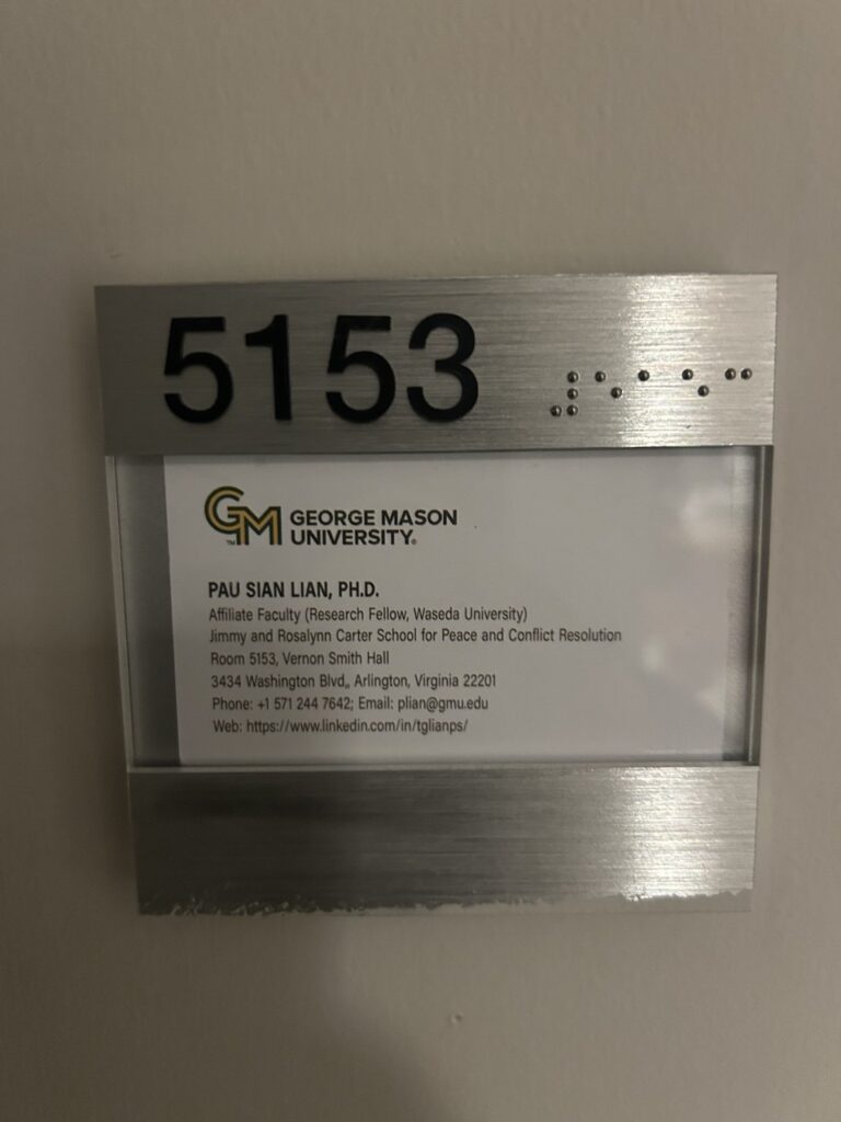 I am in my second year as an Affiliate Faculty member at the Jimmy and Rosalynn Carter School for Peace and Conflict Resolution1 at George Mason University, working under the supervision of Professor Karina Korostelina. The Carter School is consistently ranked among the top programs in the United States for conflict resolution, and its location in the Washington, D.C. metropolitan area puts it at the intersection of academic research and policy practice in ways that few institutions can match.